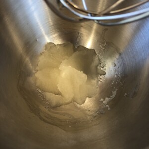 The gelatin will firm up as you prepare the other ingredients. Stir it once or twice and then rinse the spatula. Place the whisk attachment in your stand mixer.