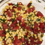 Culinary summer has finally arrived – fresh tomatoes and sweet corn are here! Besides eating them steamed or raw, this salad is one of my favorite ways to combine them. Plus it keeps well in the refrigerator and is a great picnic staple.