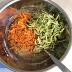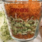 - Shred the vegetables using a box grater or food processor. You should have 2 cups veggies.