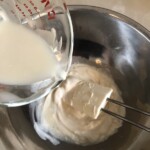 Combine the yogurt and milk. I find it easier to add the milk slowly so the yogurt does not clump. Add egg and mix.