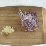 - Saute the shallots and garlic in a small pan in a half teaspoon of oil for about 5 minutes until transluscent. Cool. (This step is optional but improves the flavor if you are not fond of strong onions & garlic.)