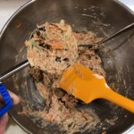 When your vegetables are shredded, place them on a double layer of paper towels. Because of the amount of moisture in zucchini, I put the zucchini in one double layer of paper towels and the other veggies in another if I am doubling the shredded veggies (which I always do!) As you prepare your other ingredients, the shredded vegetables will lose moisture. Squeeze as much liquid as you can out of them before adding the vegetables to the batter. If you prepare your veggies earlier in the day (store in the fridge) or even the day before, you will not need to squeeze out any moisture!