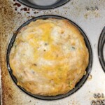 - ****** A toothpick does not work well to check for doneness because the melted cheese on top keeps all the crumbs inside the muffin so you cannot tell if they are done.
